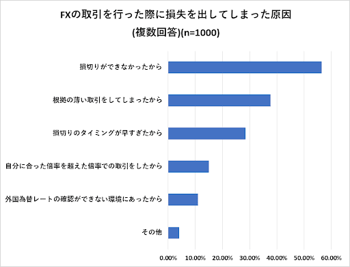 実際、FXで損失を出した理由の第1位は「損切りができなかったから」で、56.5%に上ります。