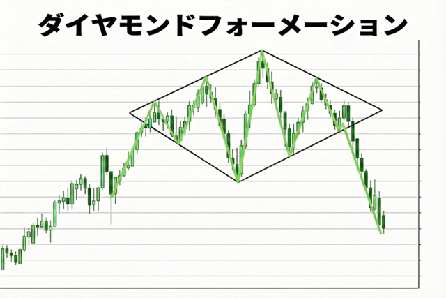 ダイヤモンドフォーメーションは、チャートでひし形(ダイヤモンド型)に見えるパターンです。