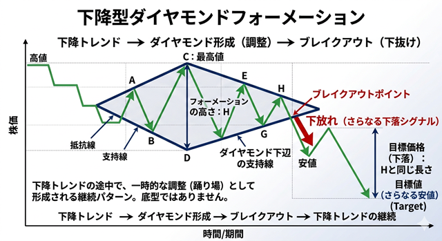 ダイヤモンドフォーメーションは、相場の転換点を示す強力なシグナルですが、形成に時間がかかりダマシも発生します。