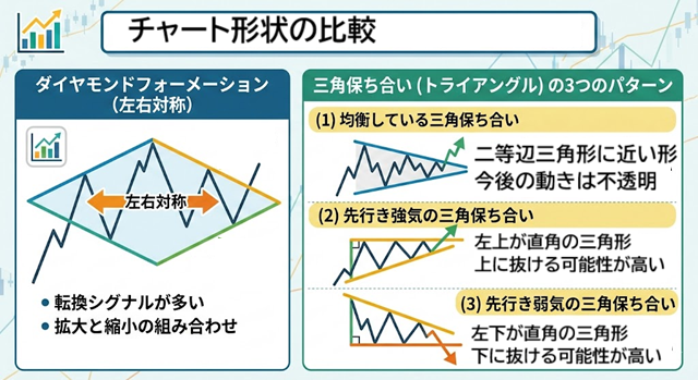 | 三角保ち合い | ダイヤモンドフォーメーション | |