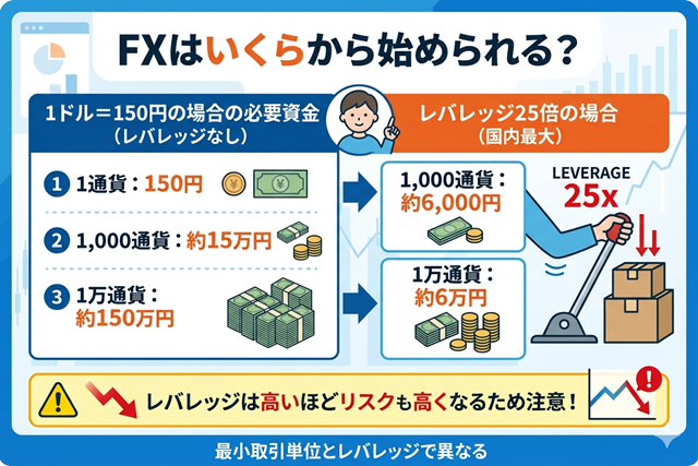 FXで必要な資金は、最小取引単位とレバレッジにより異なります。