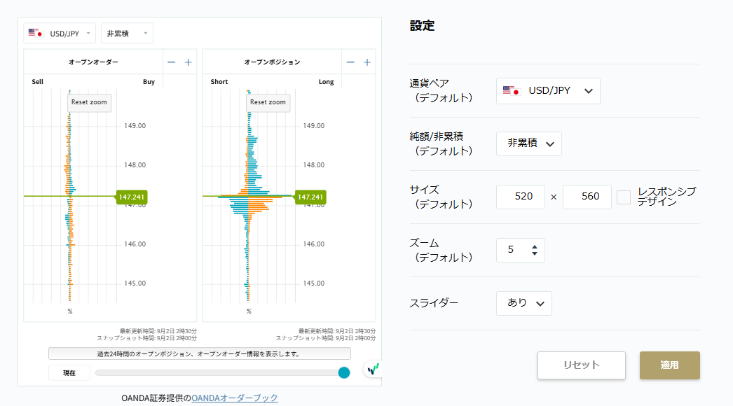 OANDA Japanは世界的に有名なオーダーブックを提供しています。