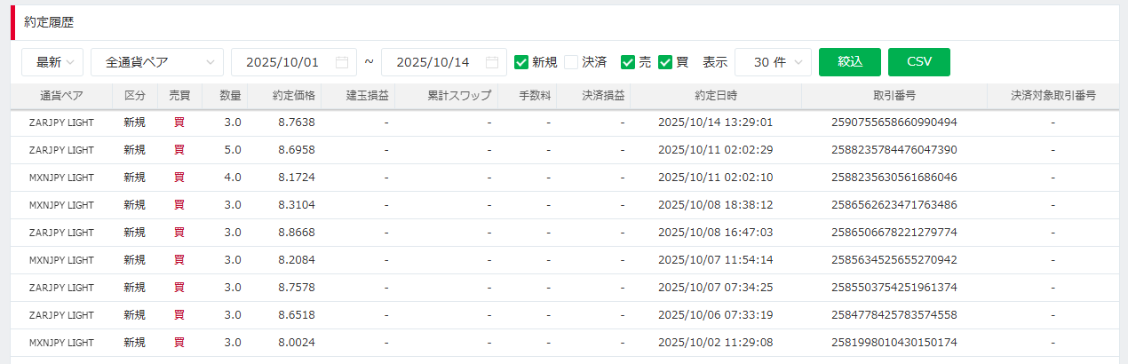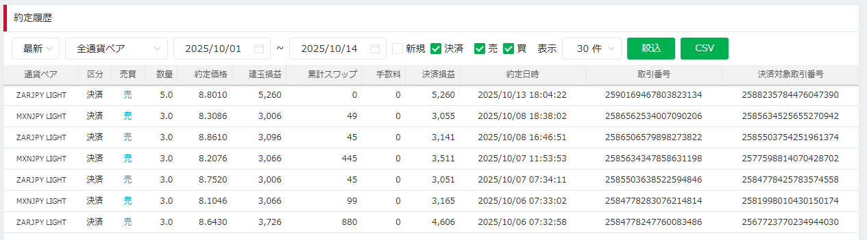 この記事では、約定履歴と保有状況、通貨ごとの地合いを手がかりに、次週へ向けた見直しポイントを簡潔に整理していきます